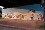 Ebenfalls 2017 organisierten wir in Kooperation mit dem Jugendamt des Regionalverbands Saarbrücken das große Meeting zum 15-jährigen Jubiläum der Legalisierung der Saarbrücker Wall an der Saar. Lokale und internationale Künstler*innen gestalteten die 450 Meter lange Wand komplett neu. Parallel dazu veranstalteten wir einen Workshop für Jugendliche unter der Ostspangen-Brücke und organisierten eine Ausstellung mit Siebdrucken von 20 teilnehmenden Künstler*innen im Garelly-Haus.