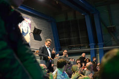 Über 250 Besucher*innen kamen zur Premiere im Filmhaus Saarbrücken. Zur Begrüßung sprach der saarländische Minister für Bildung und Kultur, Ulrich Commerçon.